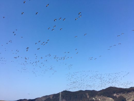 現場近くでマガンが一斉に飛び立ちました。 迫力ある羽音に春を感じます。