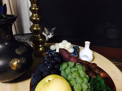 今日は十五夜。 にゃんこ達も喜んでいます。 楽しそうだね。